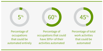 highlighted the potential disruption of the workforce due to increased automation. They reported that 60 percent of jobs could have 30 percent of more of their activities automated. Although such changes are not going to happen immediately, they point to an increasing problem for the federal workforce and the workers everywhere. More and more jobs will be automated, skill requirements will change, and the pool of available talent may not have all of the skills needed to perform the work. The global scope of the issue means agencies will be joining the private sector in a search for talent that simply may not be there. Competitive pay, benefits and working conditions will not guarantee that the government or any private sector employer will be able to hire the people they need.