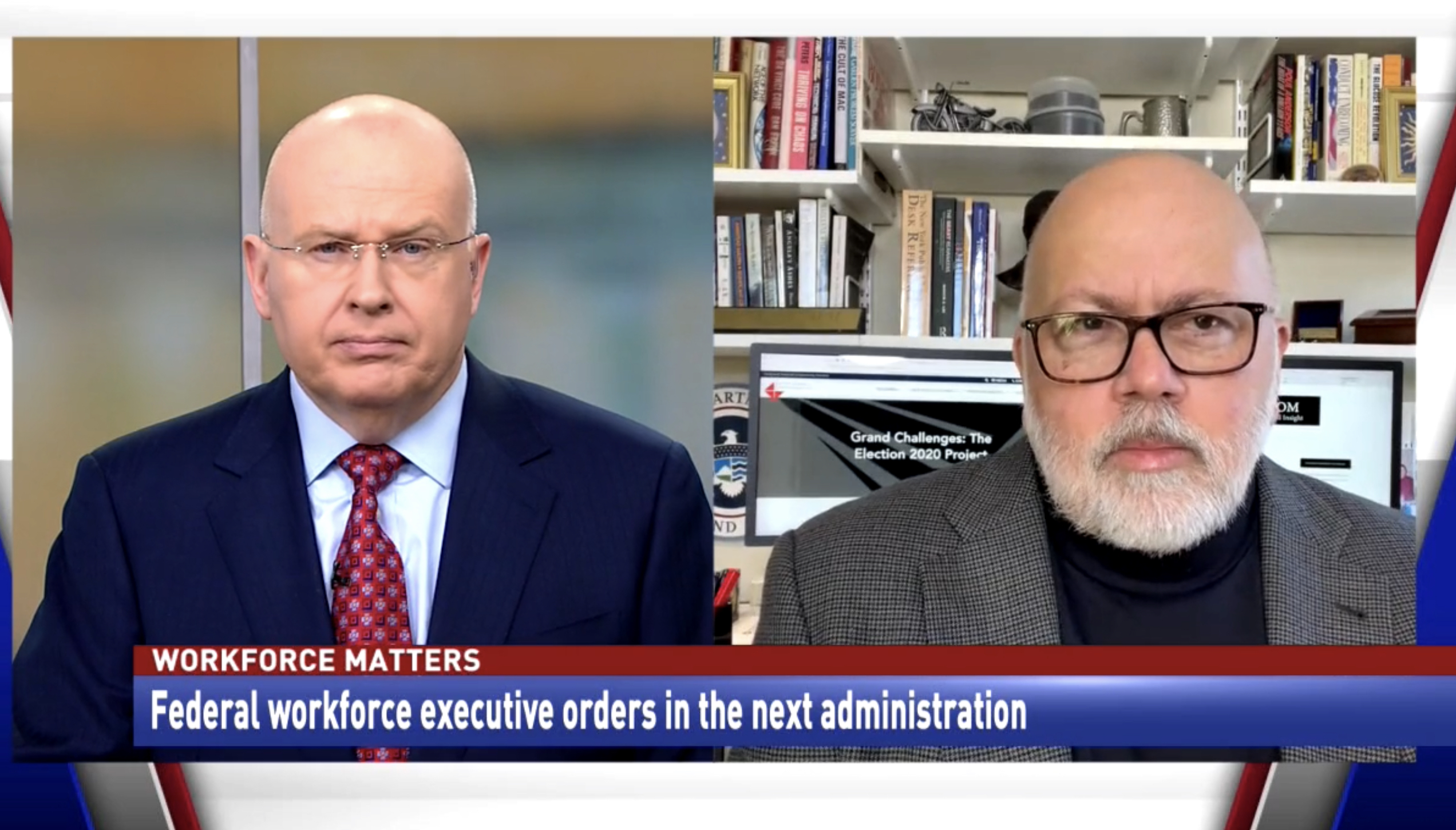 On Monday evening I appeared on Government Matters with Francis Rose on WJLA 24/7 News. Francis and I discussed a proposed Executive Order prepared by a working group of National Academy of Public Administration Fellows. The group, which I led, prepared the draft EO as a follow-up to a NAPA2020 Elections Project proposal to Modernize and Reinvigorate the Public Service. The proposal, which is unrelated to NAPA’s ongoing study of the Office of Personnel Management, advocates for elevating the status of OPM, revoking 5 Trump Administration Executive Orders affecting the workforce, and refocusing OPM on its core policy and oversight roles.